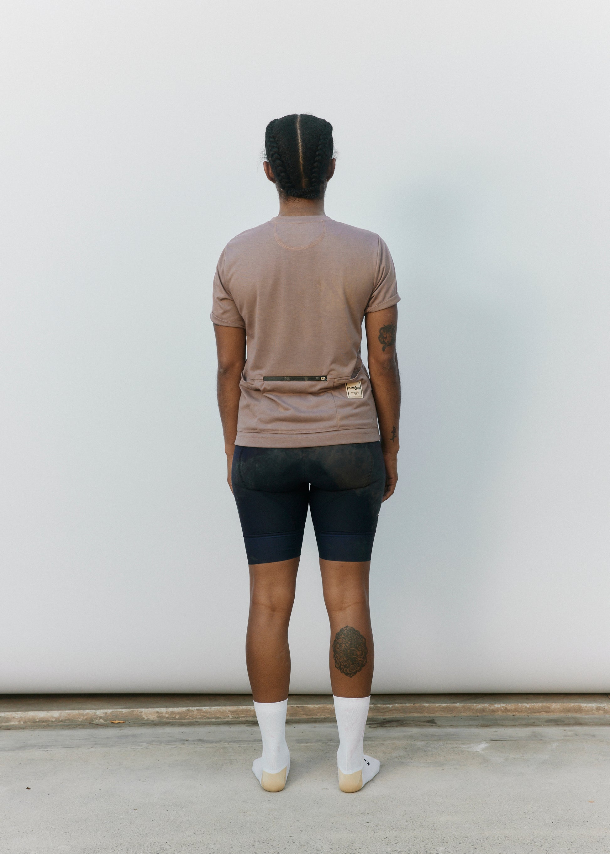 Garment sizing is optimally designed for a cycling position. Bottom of the shirt sits at the hips to minimize fabric overhang in the front and mitigate sag in the back when pockets are in use. The sleeves sit just above the elbow to optimize for full coverage when in the riding position.