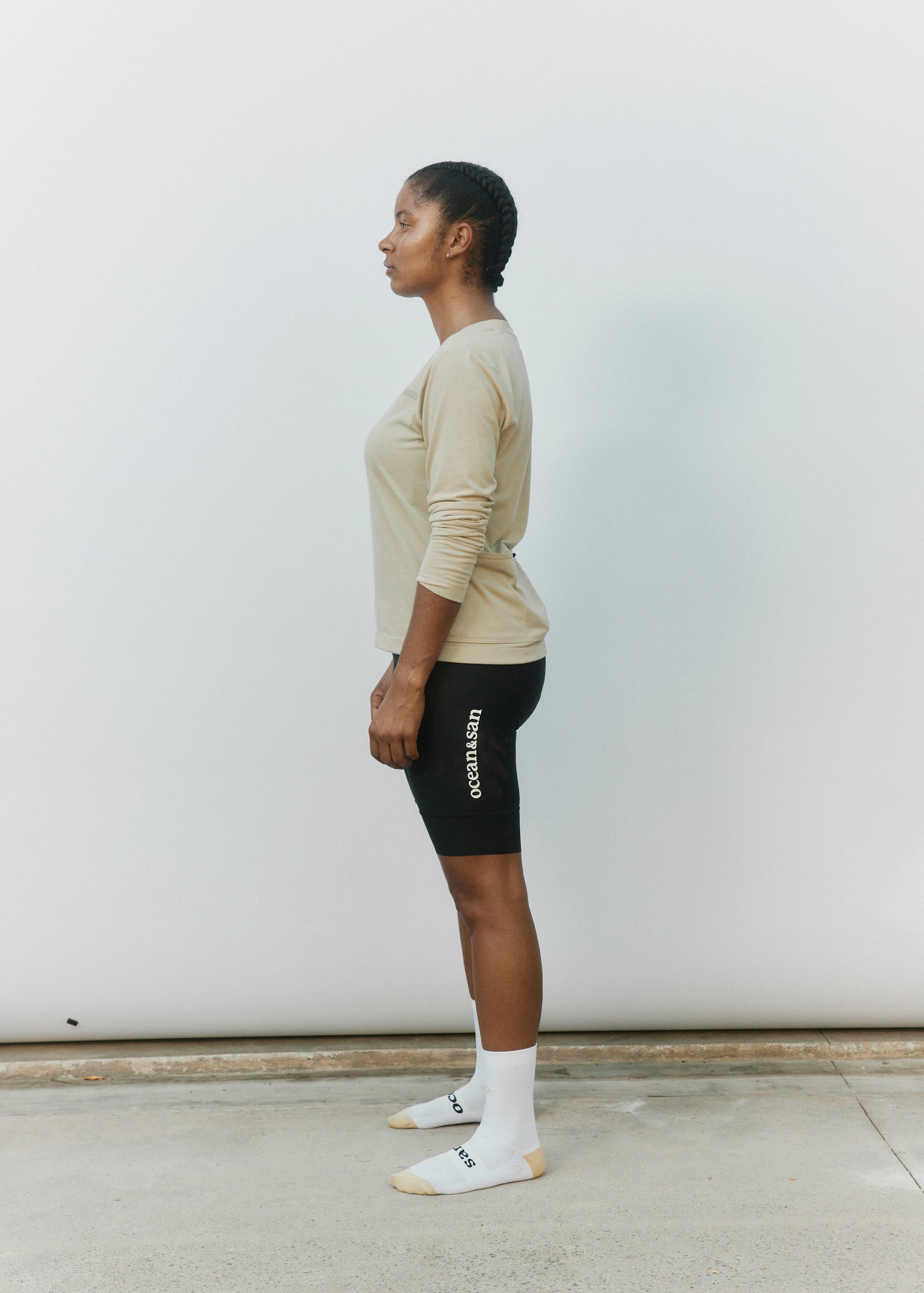 Garment sizing is optimally designed for a cycling position. The Bottom of the shirt sits at the hips to minimize fabric overhang in the front and mitigate sag in the back when pockets are in use. The sleeves sit just past the wrists to optimize for full coverage when in riding position.