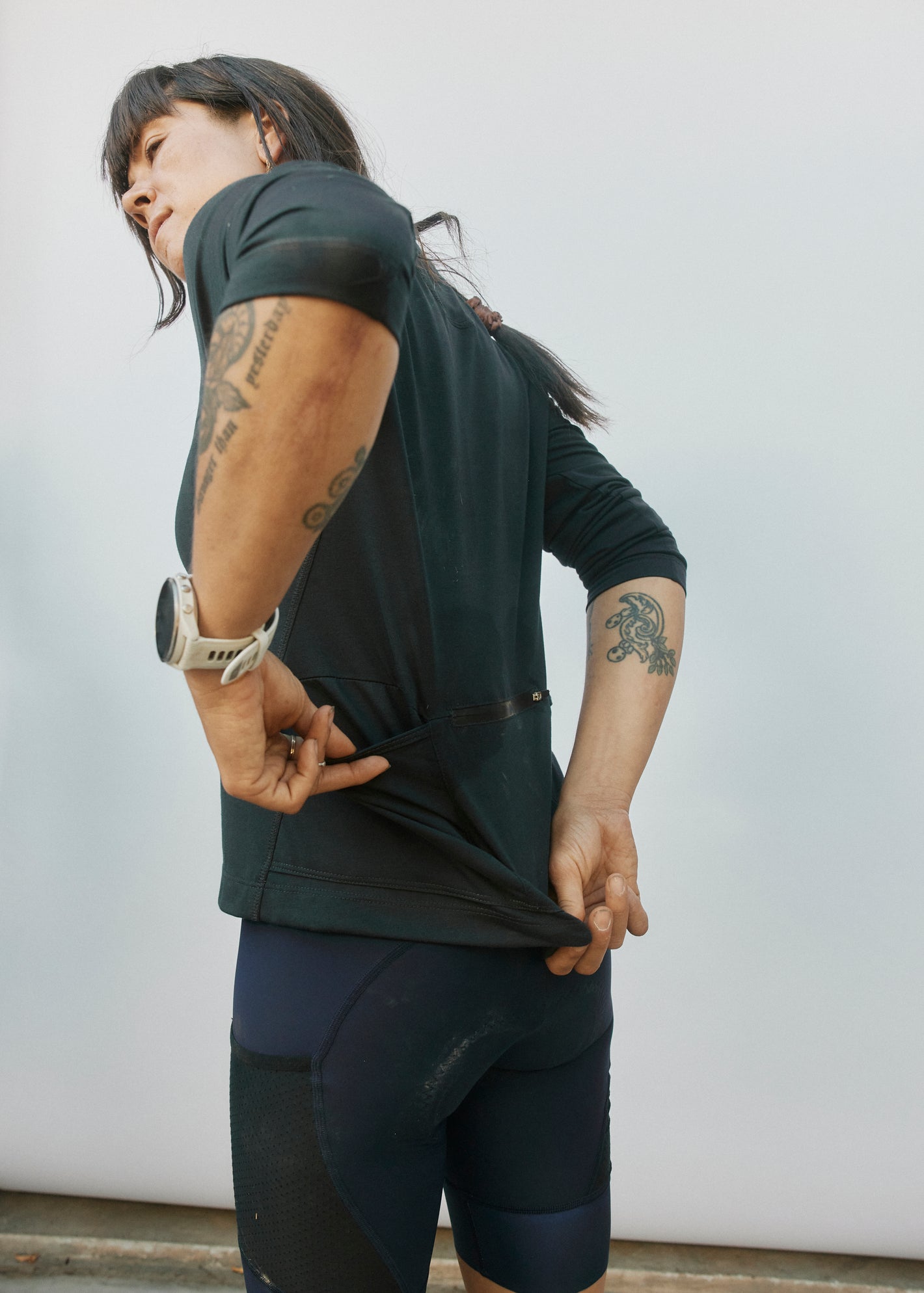 Best shirt to wear on the mountain or gravel bike! Love the pockets, especially the middle zippered pocket. Hold lots of snacks and a vest if I need one! The material is so quick drying so rinsing it out and drying on a hot day would be super easy and cooling. Looks like a shirt and functions like a jersey. Love the style being nice and casual.